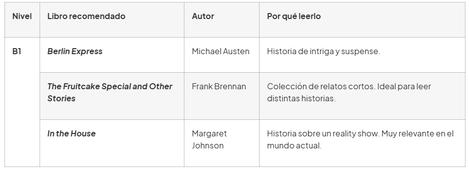 ¿Qué libros de lectura en inglés para nivel B1 son recomendables?